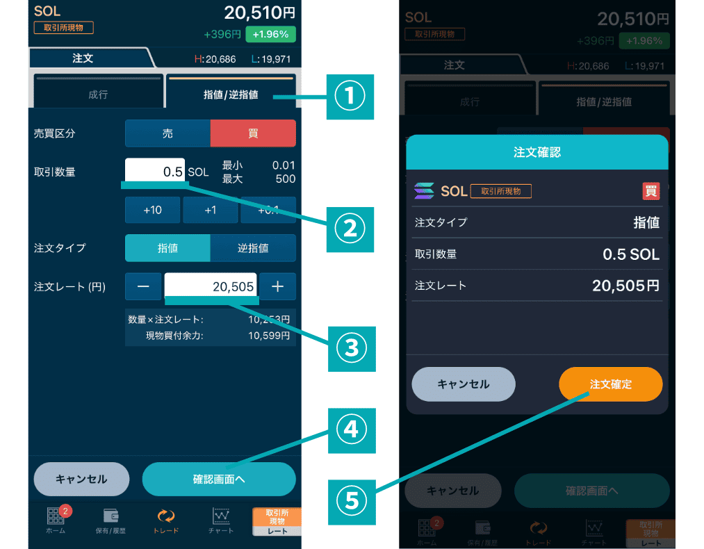 ②日本円を入金し、取引所でSOLを購入