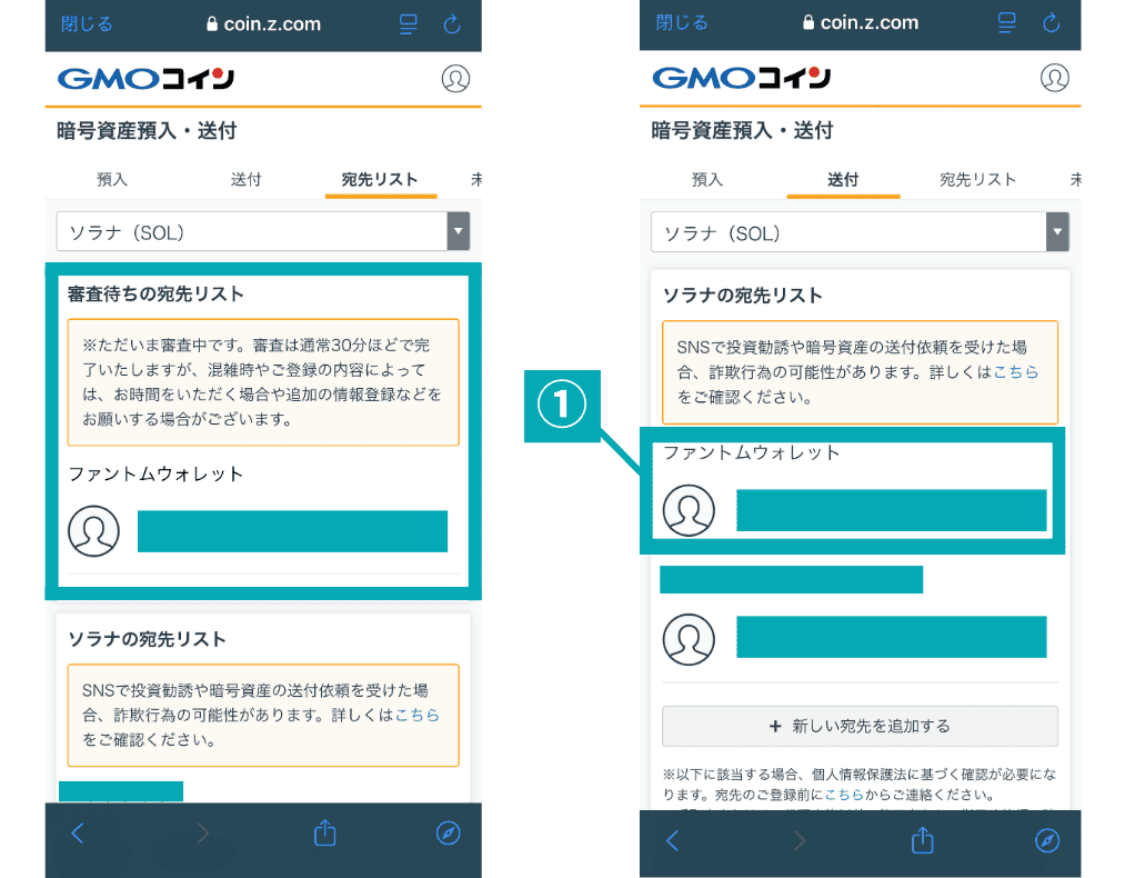 - Bitget WalletのSolanaアドレスを送金先として登録