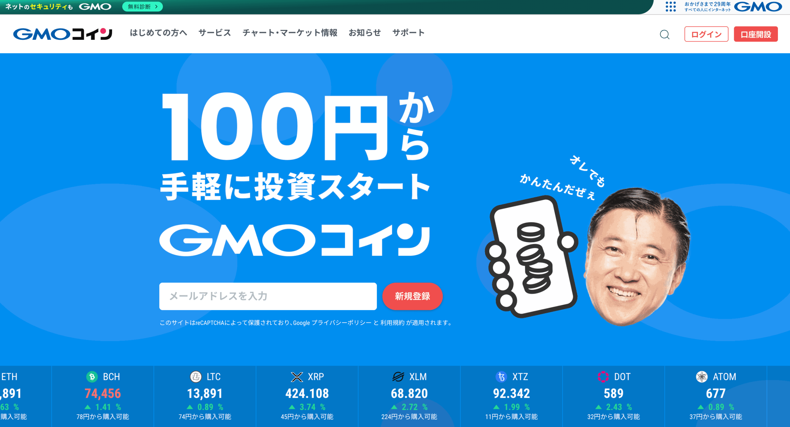 ①基本手数料無料のGMOコインを口座開設