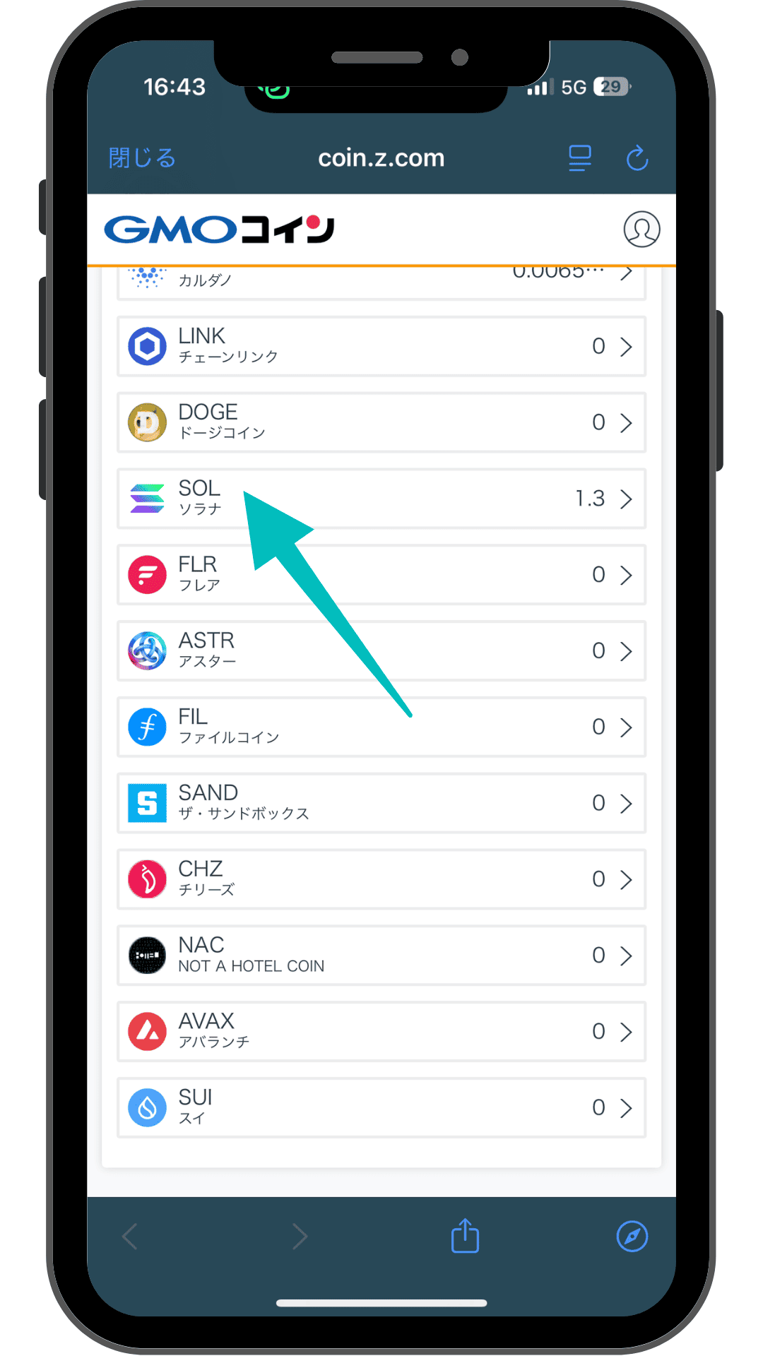 画面が切り替わったら、少し下にスクロールして「SOL(ソラナ)」を選択しましょう。