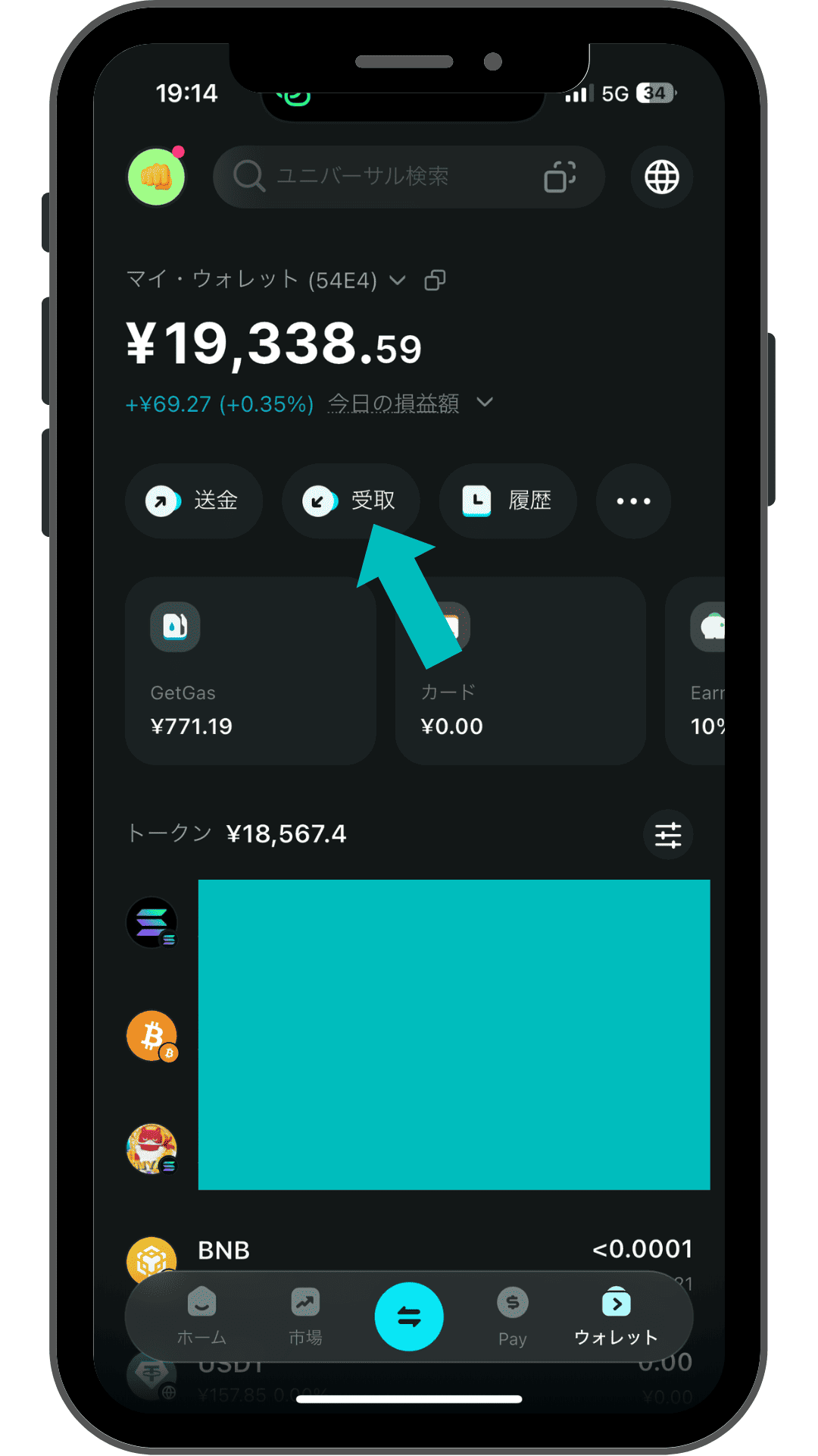 ⑤Bitget WalletにSOLが入っていることを確認