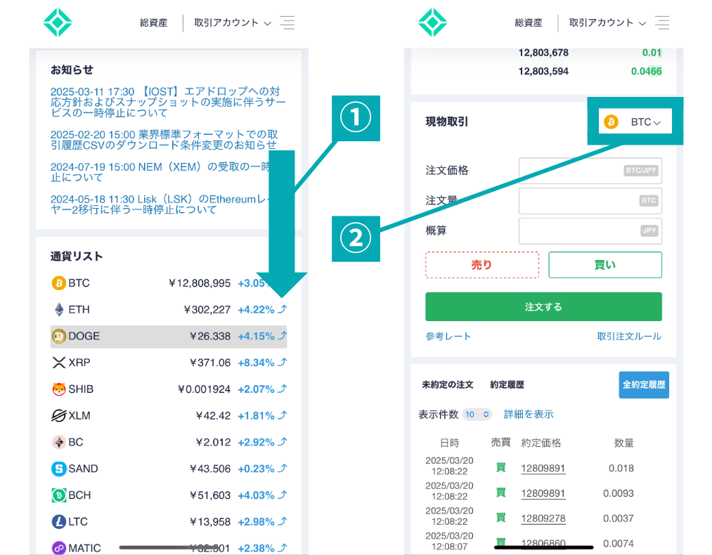 ※アプリからだと取引所ではなく販売所になってしまうので注意。