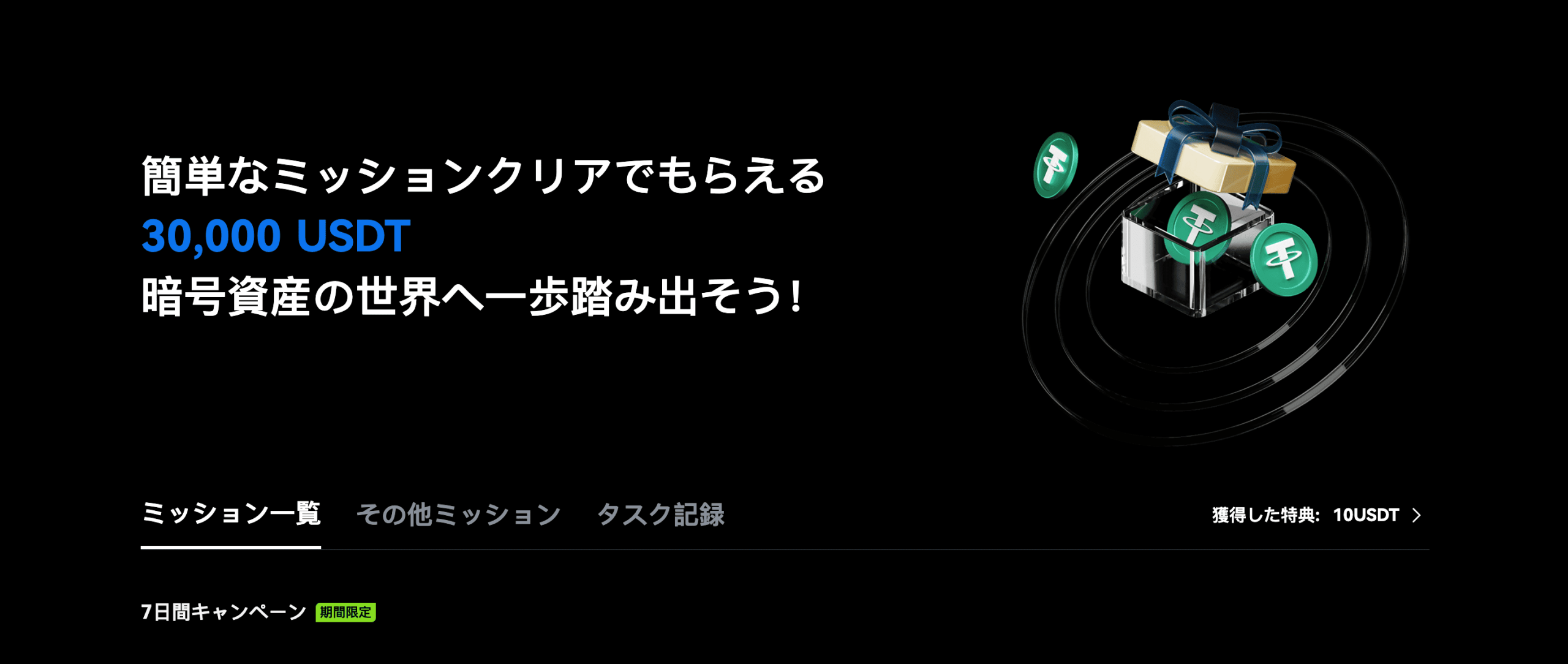 - 新規登録で最大30,000 USDTのボーナス