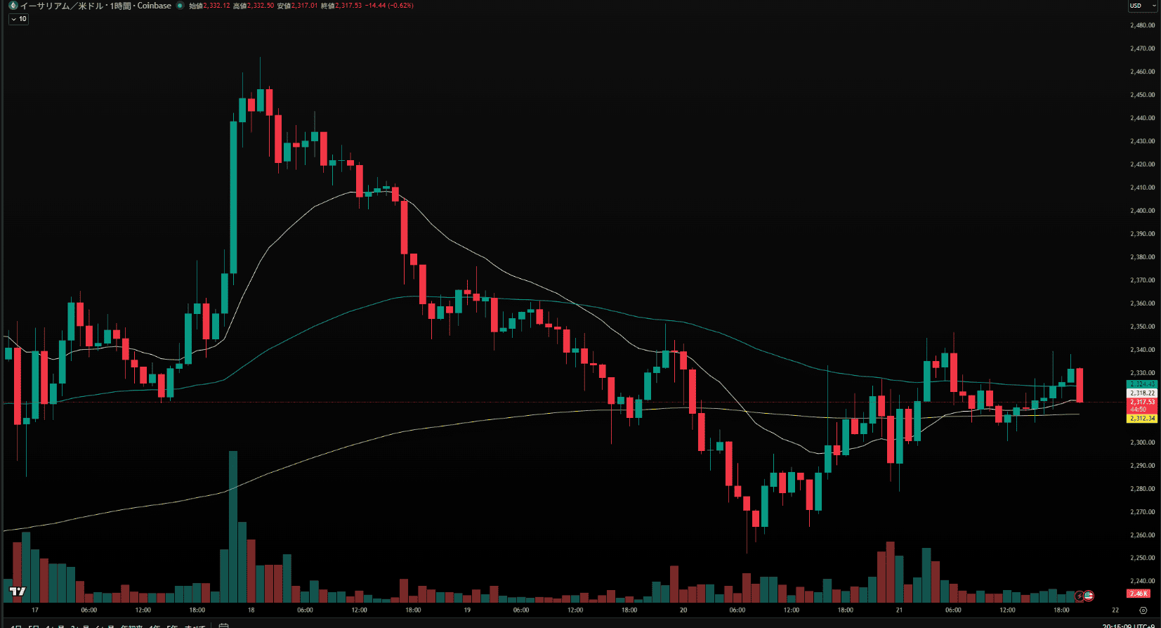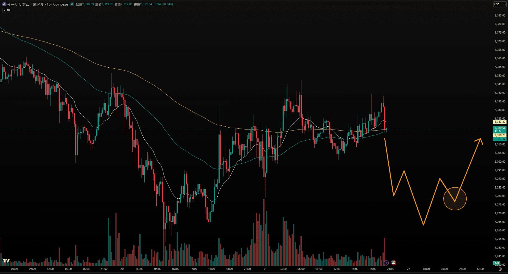 一番理想的なシナリオは、一時的な下振れ($2,300以下までの引きつけ)が入った後、ショートカバーを巻き込んで短期足で定着し、そこからロング(買い)を拾っていく戦略です。