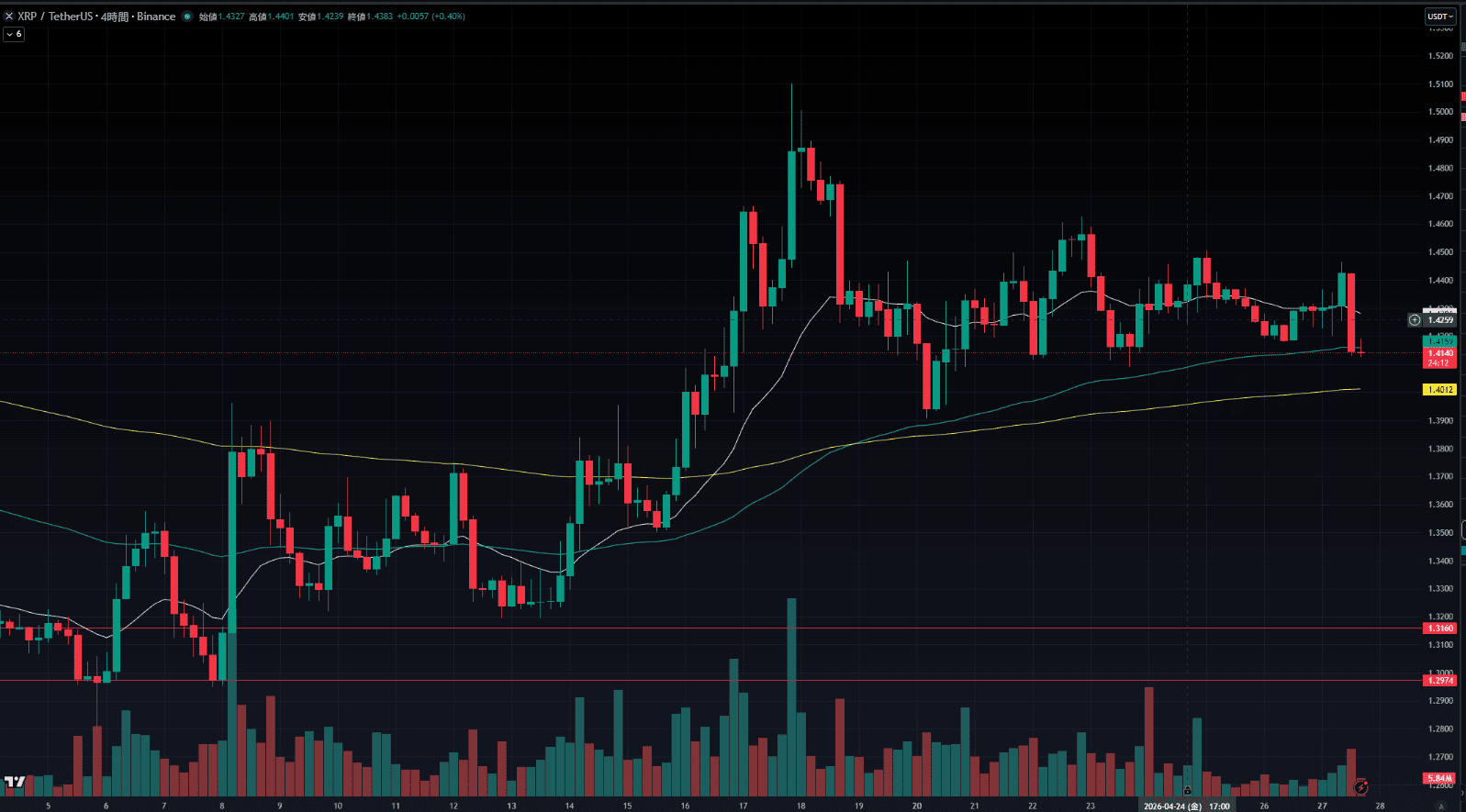 XRP/USDTの4時間足チャート