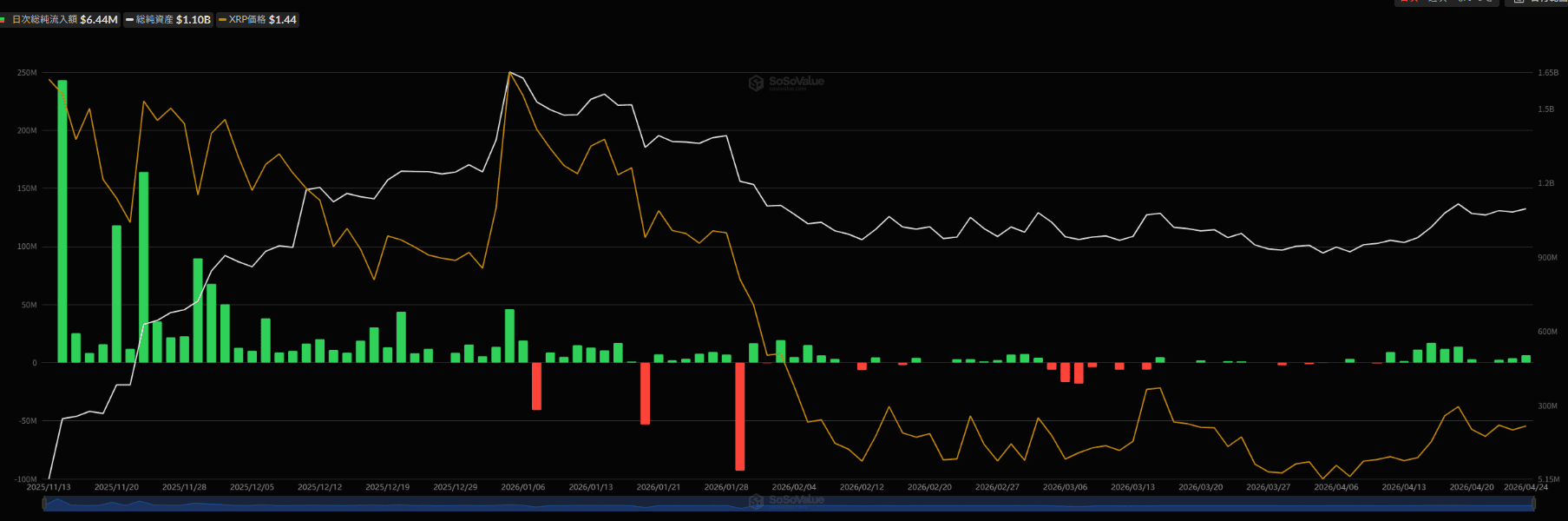 リップルの現物ETFに関しては、大規模ではないものの、機関投資家からの資金流入が確認されています。これが直近の下落局面における「下支え圧力」として市場に意識されています。