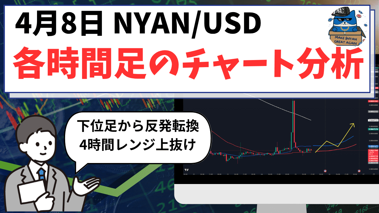NYAN/USDの4時間足・1時間足・15分足をテクニカル分析していきます。特に4時間トレンドの切り替わりに注目です!