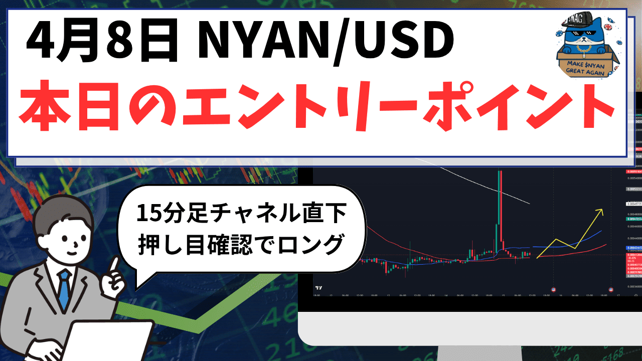 2025年4月8日のNYAN/USD(GYAN BLUEコイン)相場は、本日の早朝、トランプ大統領による「停戦合意に向けた前向きな発言」と、それに対するイラン側の歩み寄りにより、市場の空気が一変しました。