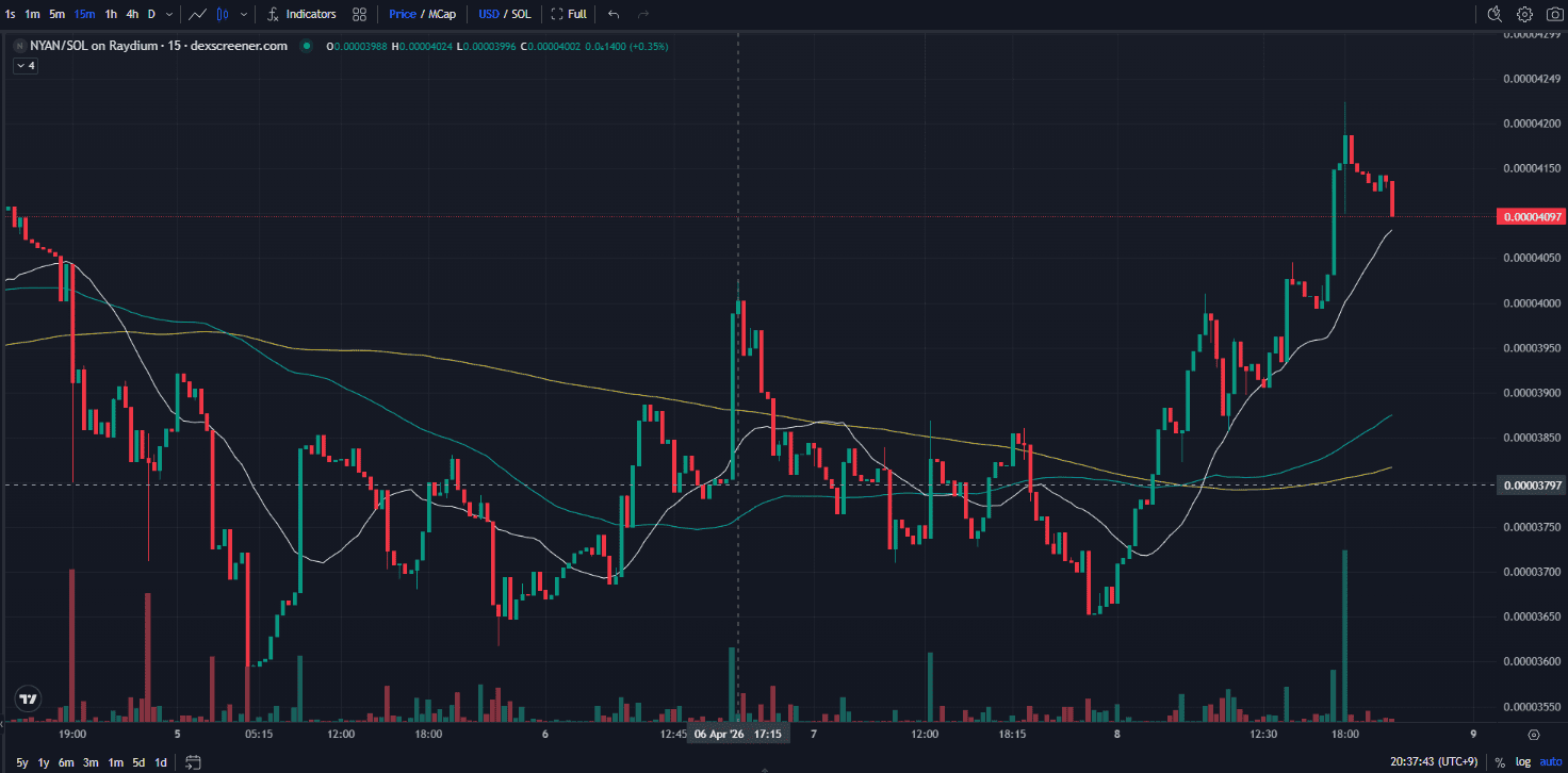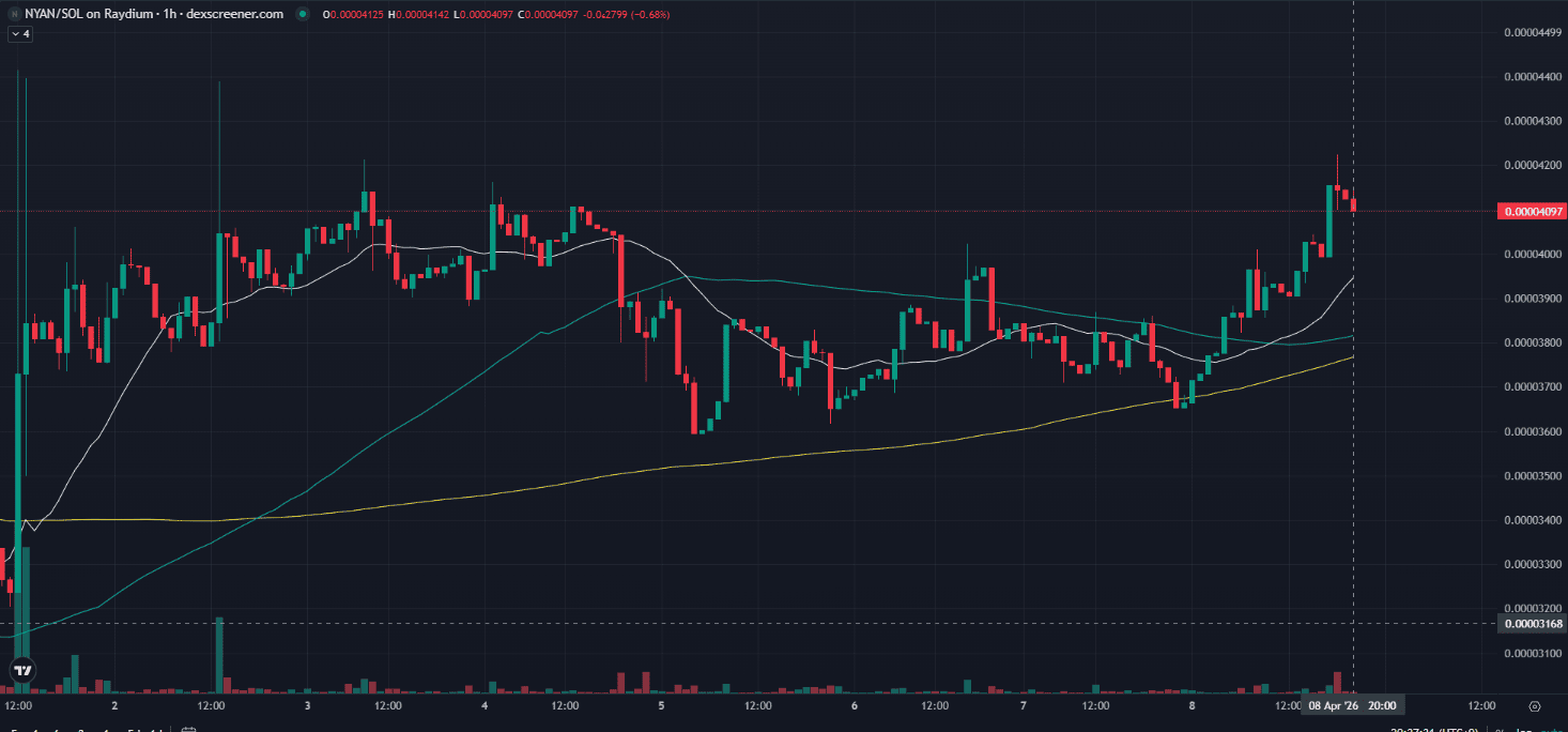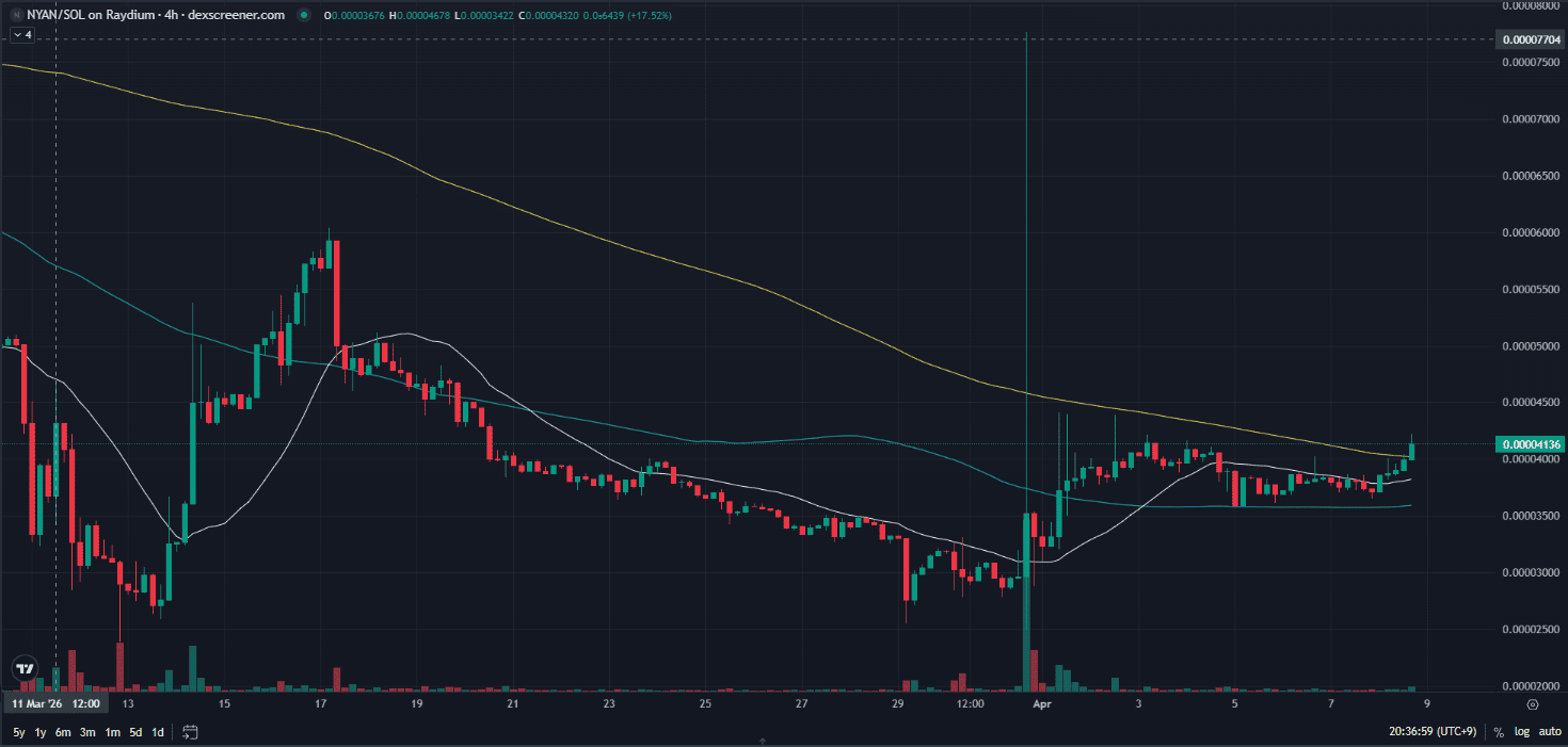 ゴールドやS&P 500(SPX)、日経平均などの主要指数が軒並み上昇する中、$NYANも直近24時間で約10%の上昇を記録。