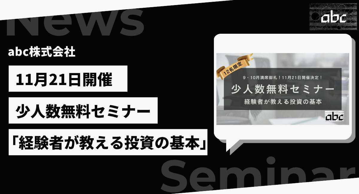 【少人数制無料セミナー】「経験者が教える投資の基本と実践」11月21日開催!