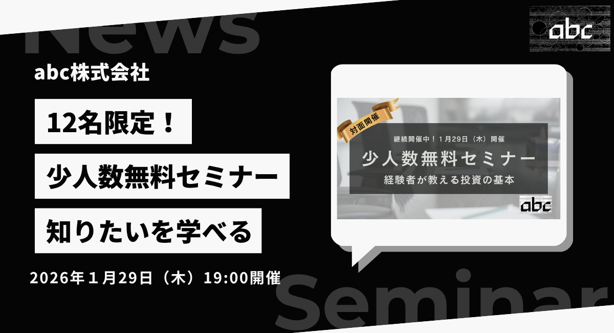 【少人数制無料セミナー】「経験者が教える投資の基本と実践」1月29日開催!